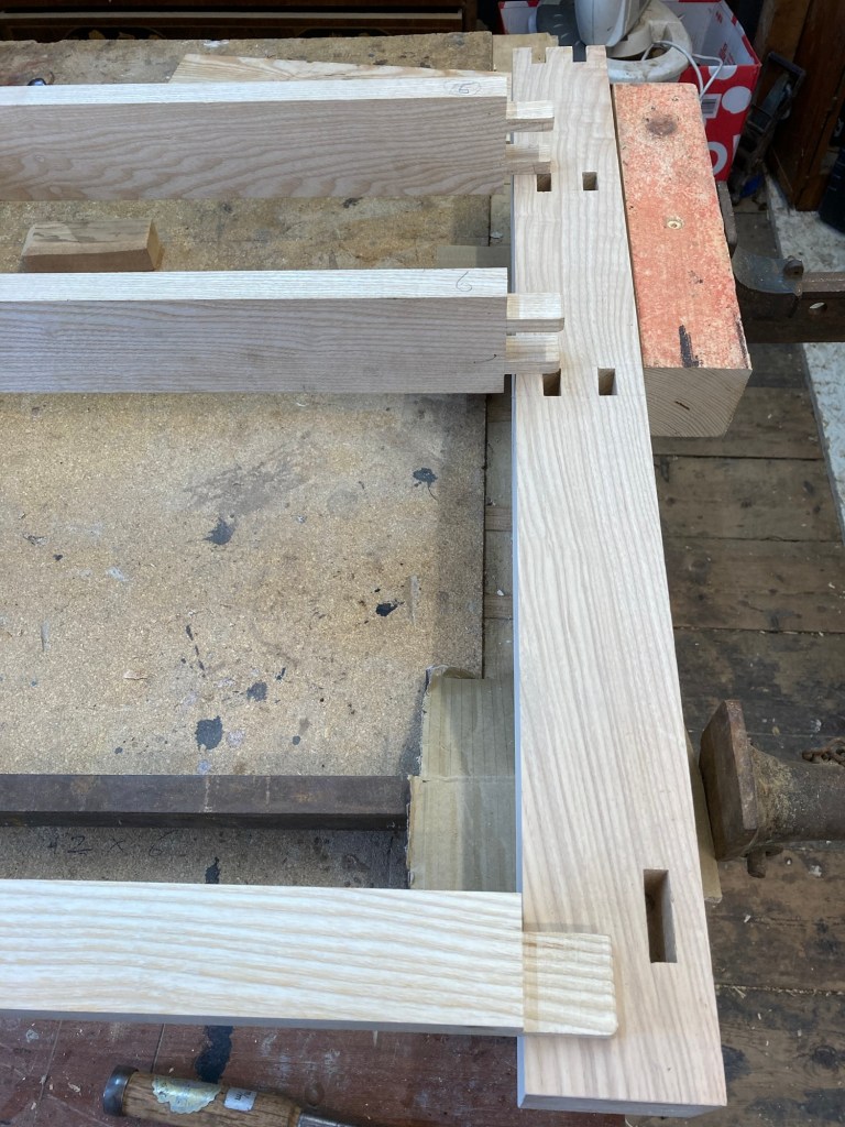 A solid ash sink unit showing all joints involved in construction