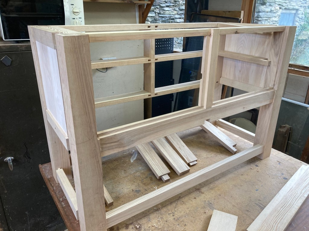Oiled unit ready to be fitted with a stone top and feature sink