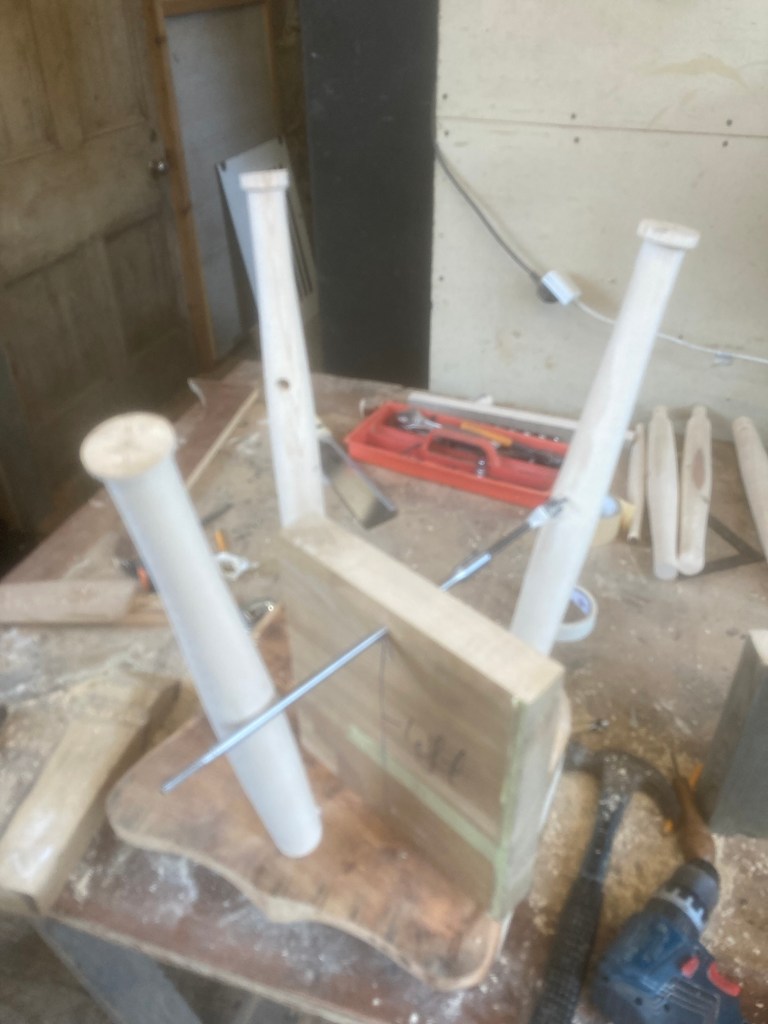 A couple of recent table bases made in oak
